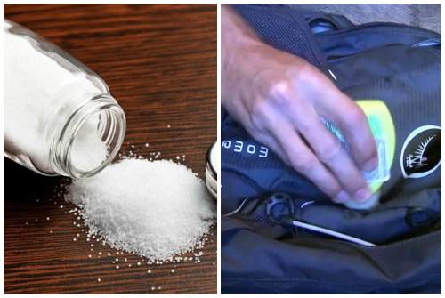 - Если у изделия ремни, заклепки или металлические аксессуары, то растворите в теплой воде мерный колпачок жидкого препарата для стирки, погрузите туда рюкзак, потрите грязь щеткой и прополощите.