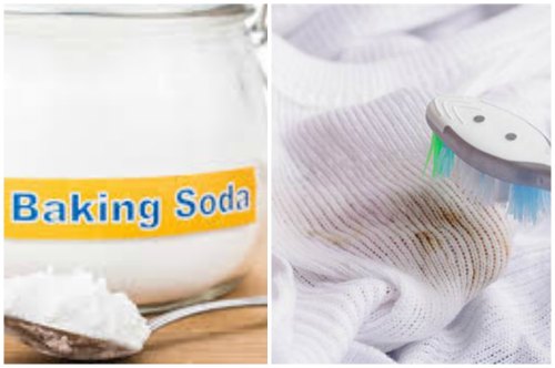 - Затем, если под рукой окажется сода, то присыпать и тщательно втереть ее в пятнышко.