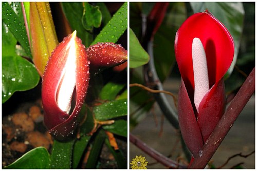 Главная причина отсутствия цветения в домашних условиях – способ опыления цветка. В дикой природе этим процессом занимаются 2 вида жуков – Rutelinae и Dynastinae (хрущики и дупляки), специализирующиеся на опылении именно этого цветка. Причём для привлечения «работников» соцветия-самцы источают аромат, содержащий в себе фермент, притягивающий нужных жучков. При этом початок соцветия отклоняется от покрывала к земле, чтобы жуки могли попасть внутрь покрывала соцветия. Угол наклона иногда достигает 45°.