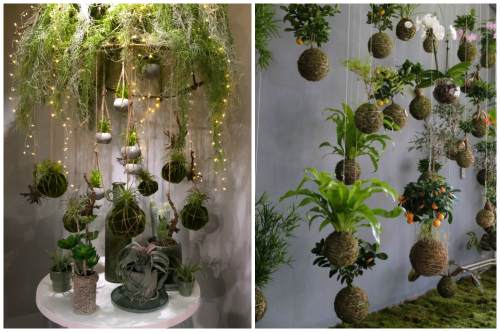 Подвесная кокедама – парящая в воздухе живая картина, напоминающая нашу планету, выполненную в миниатюре. Пальма первенства среди создателей этих фантастических сооружений принадлежит фитодизайнеру из Голландии Фёдору ванн дер Фальку. На фото две его работы, представленные на выставке в Лозанне.