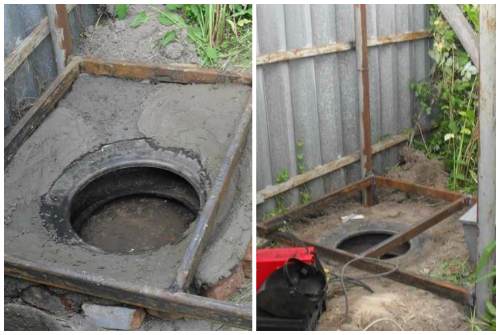 - Еще один вариант оснащения ямы- использование старых автомобильных покрышек. Выкопайте углубление высотой и шириной, чтобы вошли 4 покрышки. После этого насыпьте 10 см слой щебня, и уложите резину. По бокам в щели также всыпьте щебенку.
