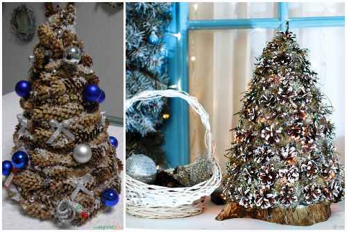 Такая новогодняя поделка идеально впишется в современный интерьер. Игрушки для её украшения можно сделать своими руками. Об этом подробно написано в этой статье.