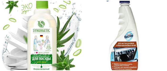 - Лидер всех рейтингов – российский бренд Synergetic, специализирующийся на разработке и выпуске абсолютно экологичных средств очистки. Любым средством для мытья посуды вы не только до блеска отмоете вашу СВЧ, но и наполните её приятным ароматом. Моющие жидкости от Synergetic настолько безопасны, что ими можно мыть детскую посуду и мультиварку. (Как помыть мультиварку, читайте в нашей специальной статье).